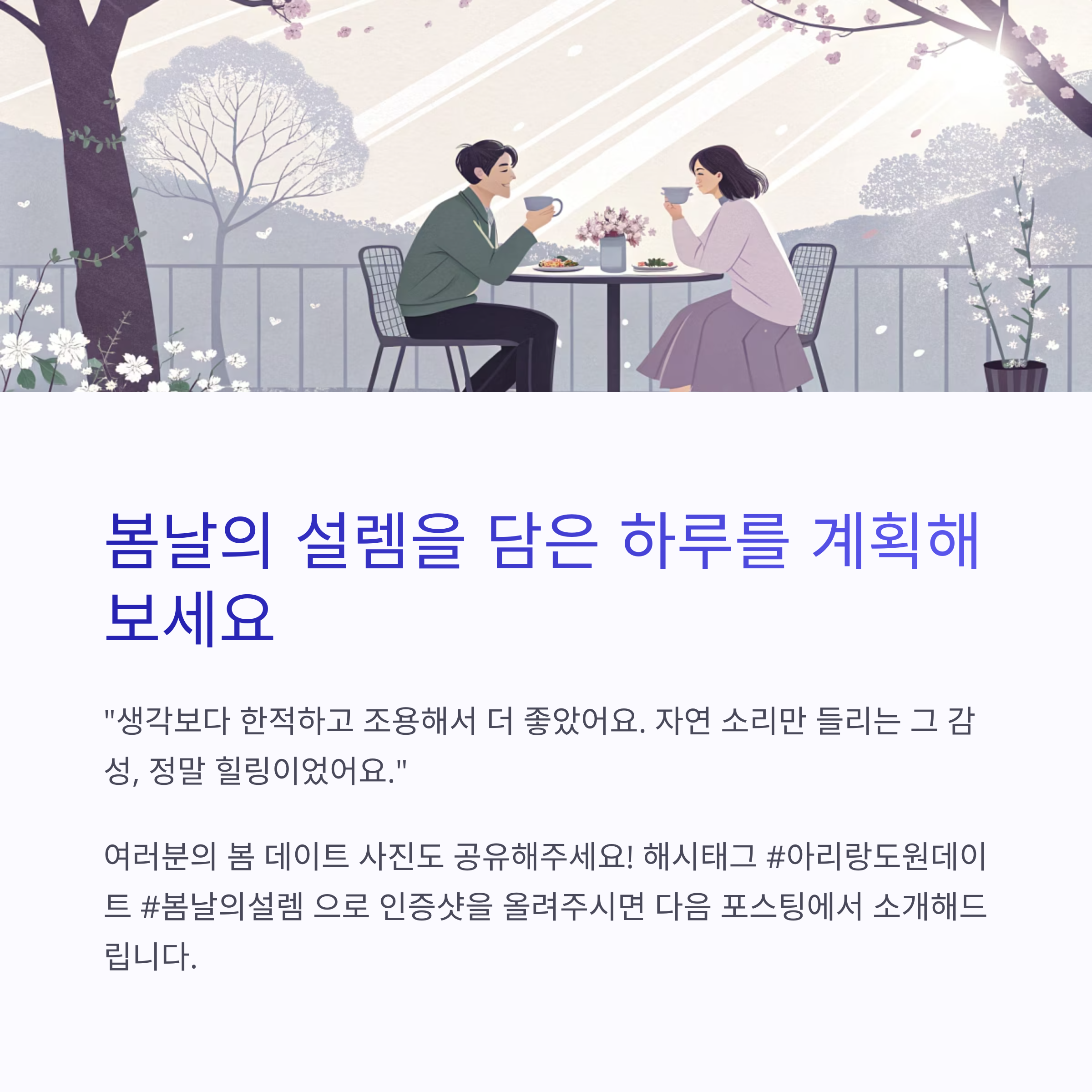 따뜻한 햇살과 꽃내음 가득한 봄, 커플 데이트 코스로 용인 아리랑도원이 주목받고 있습니다.
