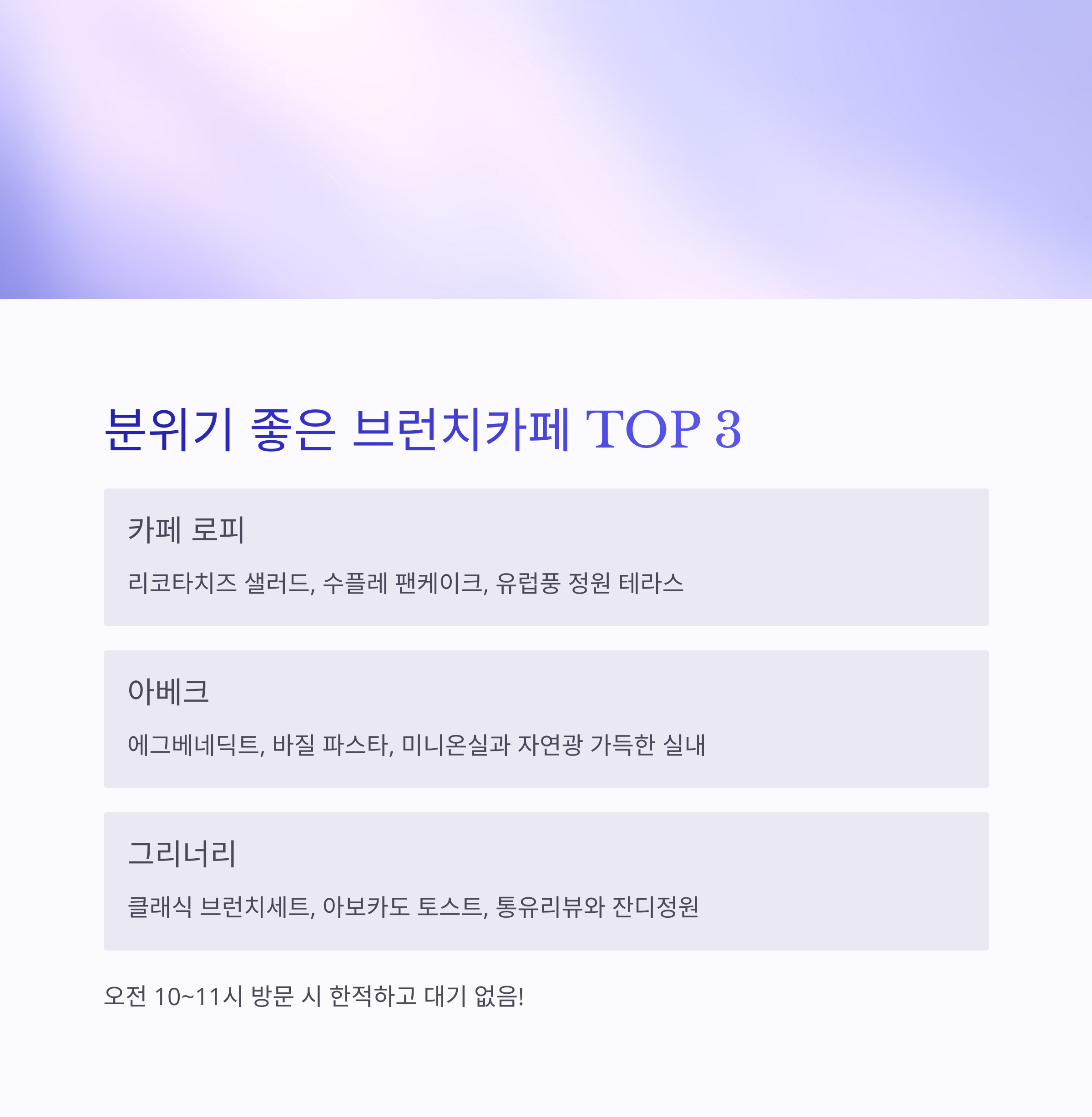 아리랑도원 근처에서 인기 높은 브런치카페 3곳을 소개합니다.