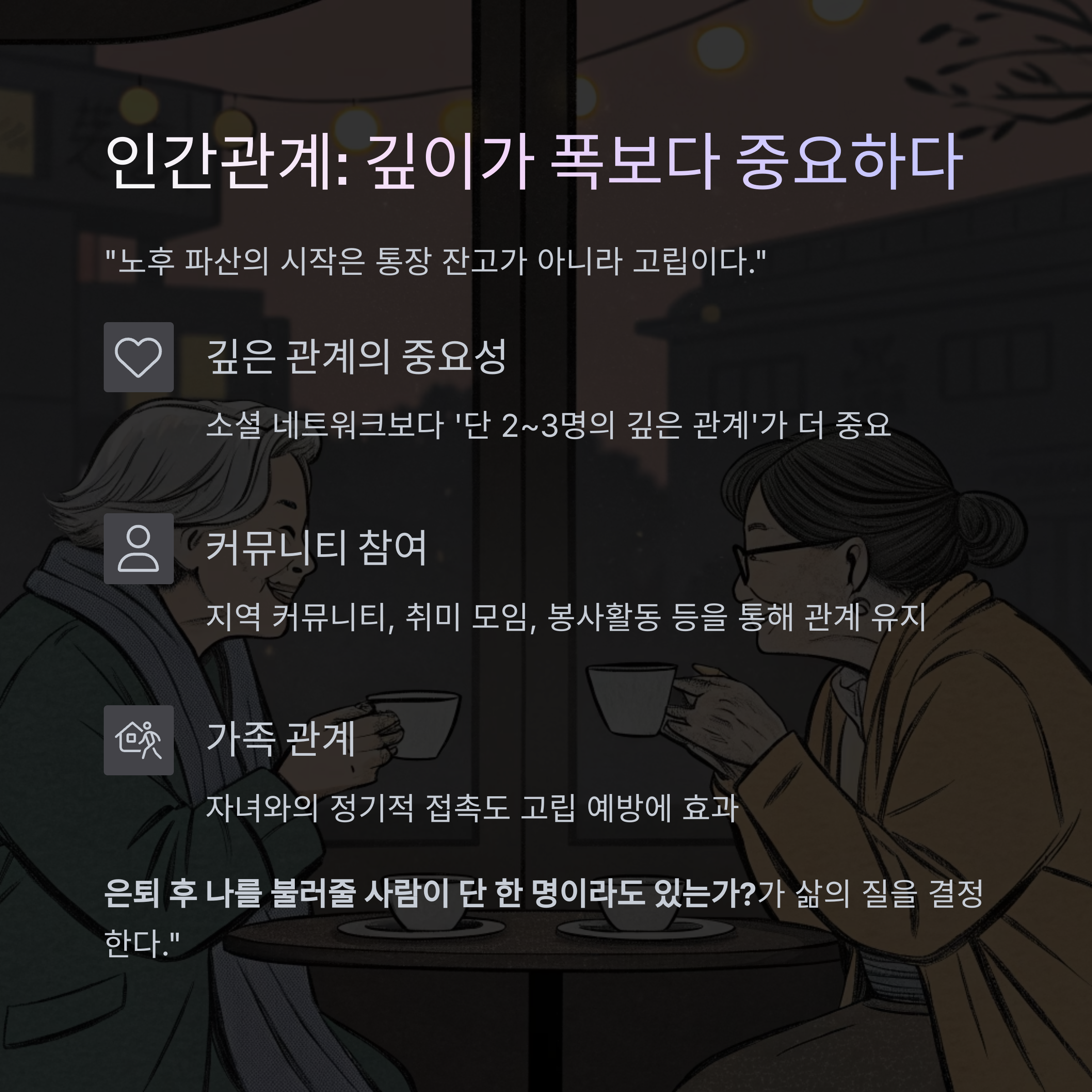 “노후 파산의 시작은 통장 잔고가 아니라 고립이다.”