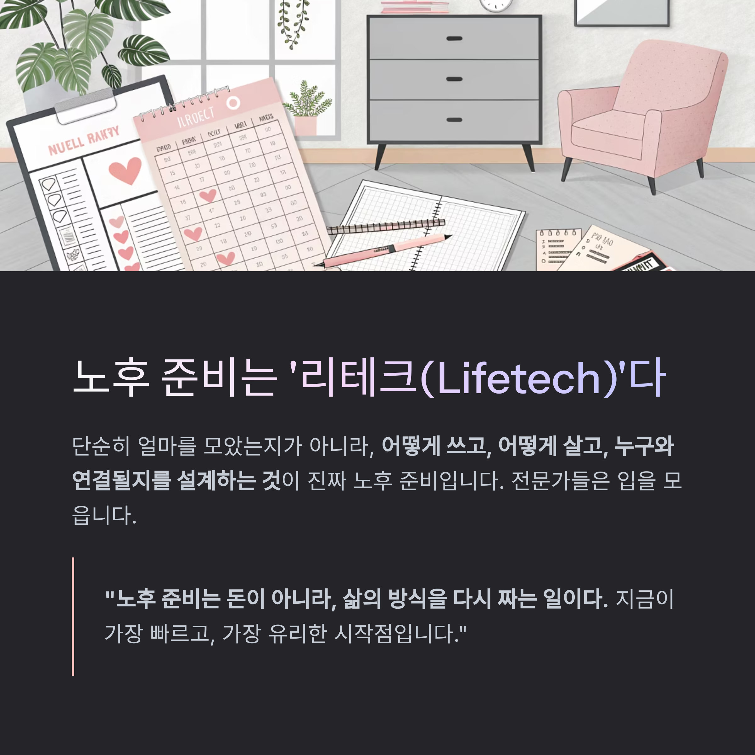 결론: 노후 준비는 ‘재테크’가 아니라 ‘리테크(Lifetech)’다