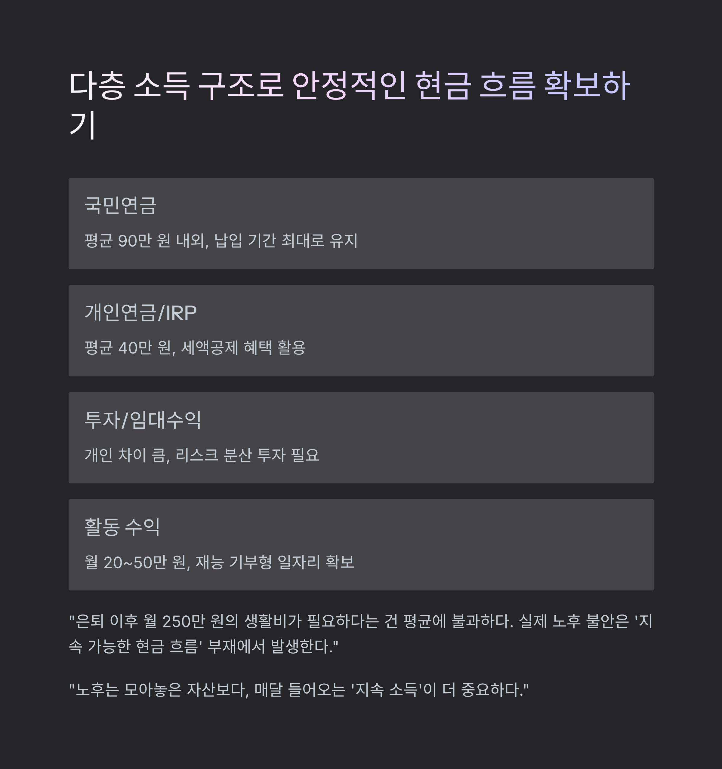 “노후는 모아놓은 자산보다, 매달 들어오는 ‘지속 소득’이 더 중요하다.”