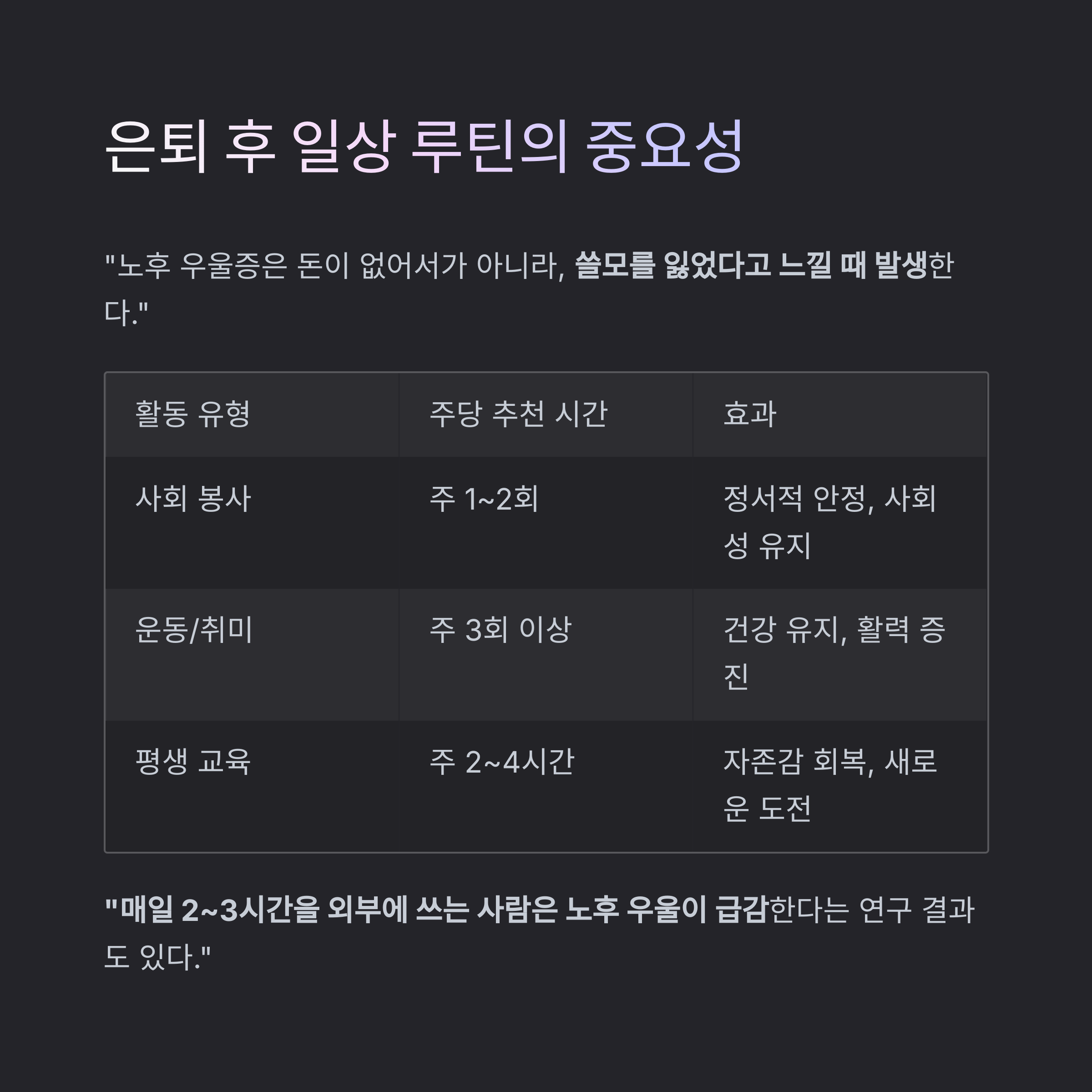 “노후 우울증은 돈이 없어서가 아니라, 쓸모를 잃었다고 느낄 때 발생한다.”