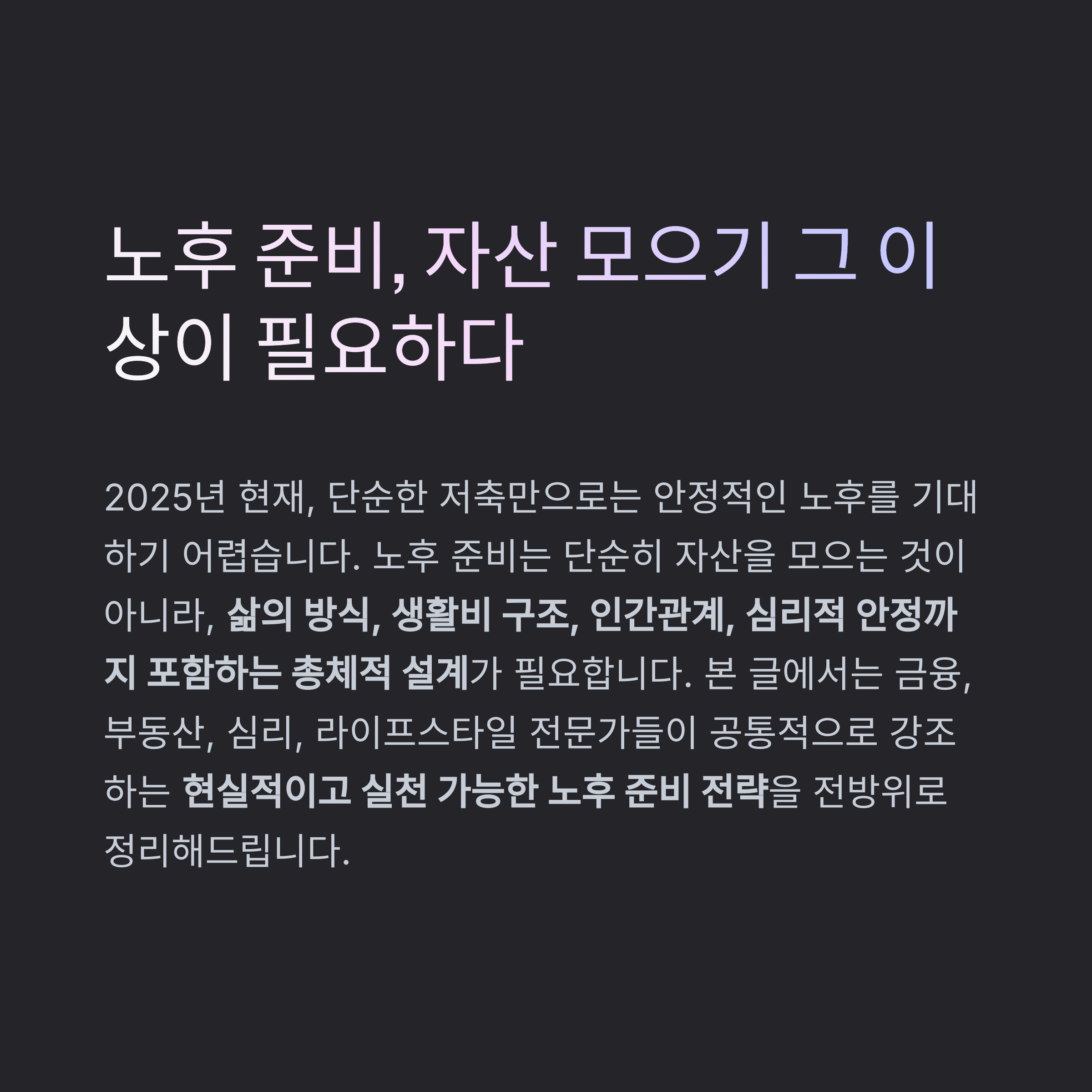 “노후 준비는 돈이 아니라, 삶의 방식을 다시 짜는 일이다.