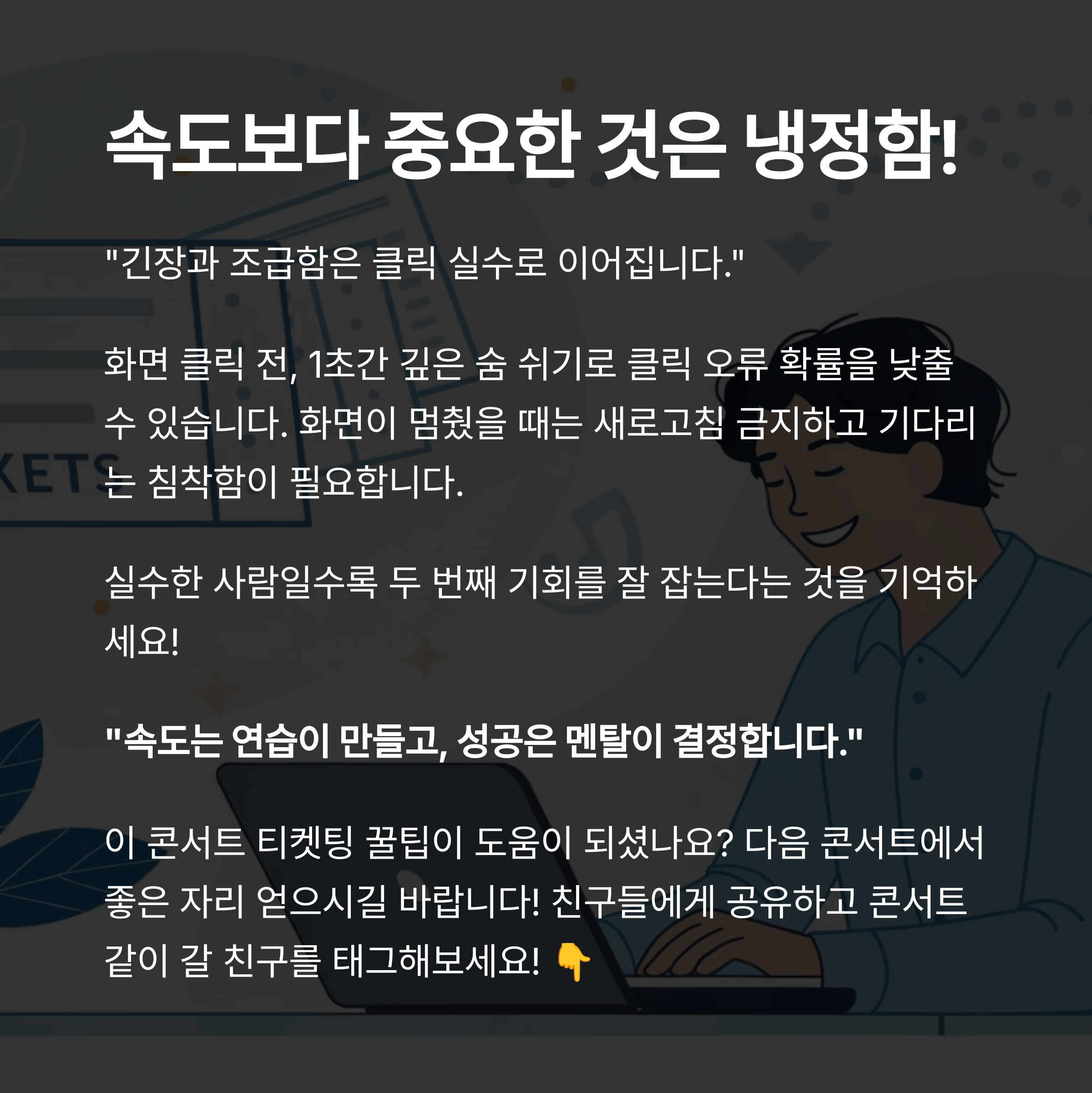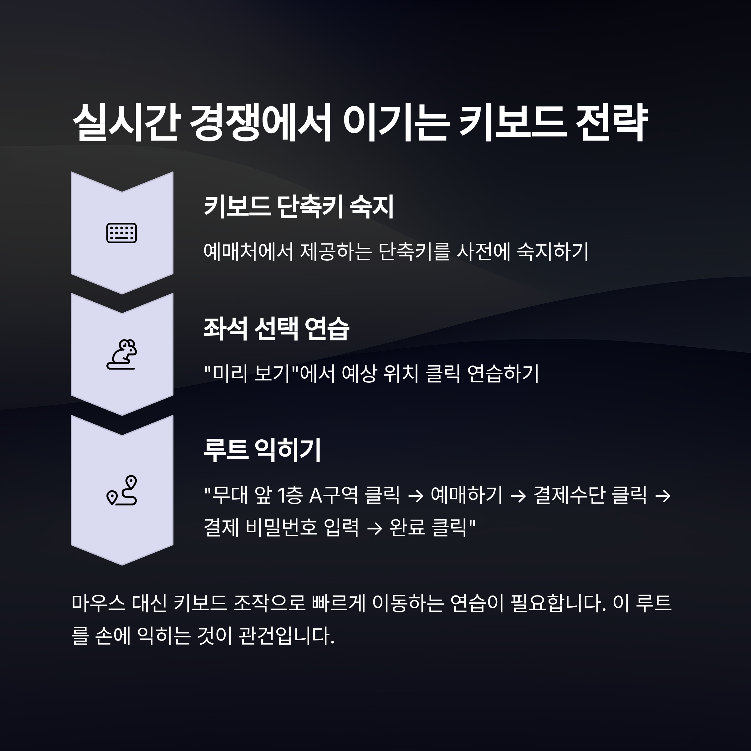 - 키보드 단축키: 예매처에서 제공하는 단축키를 사전에 숙지