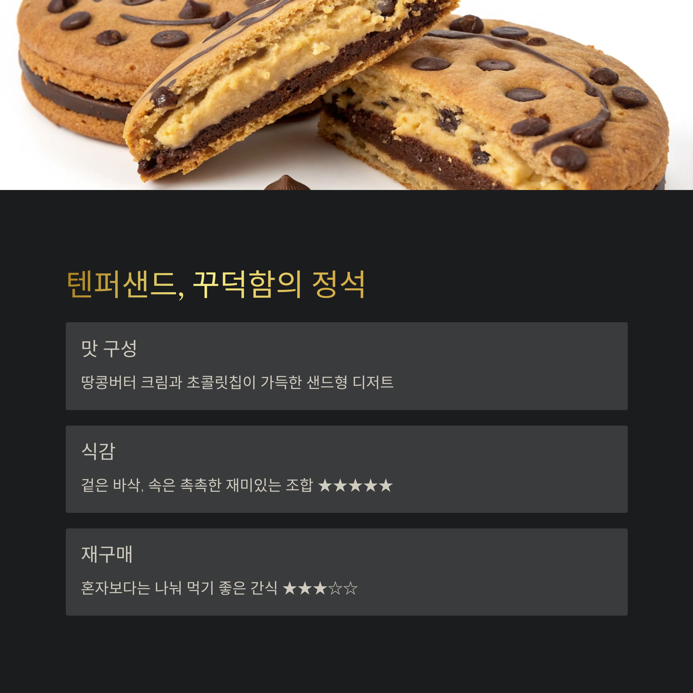 | 재구매 의사 | ★★★☆☆ (공유용 간식 추천) |