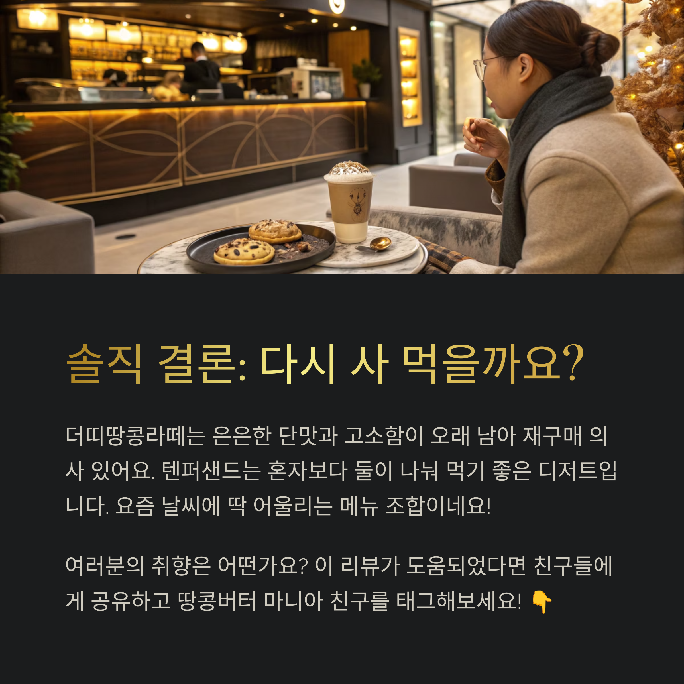 땅콩라떼의 고소함 vs 텐퍼샌드의 꾸덕함, 과연 재구매할만할까?