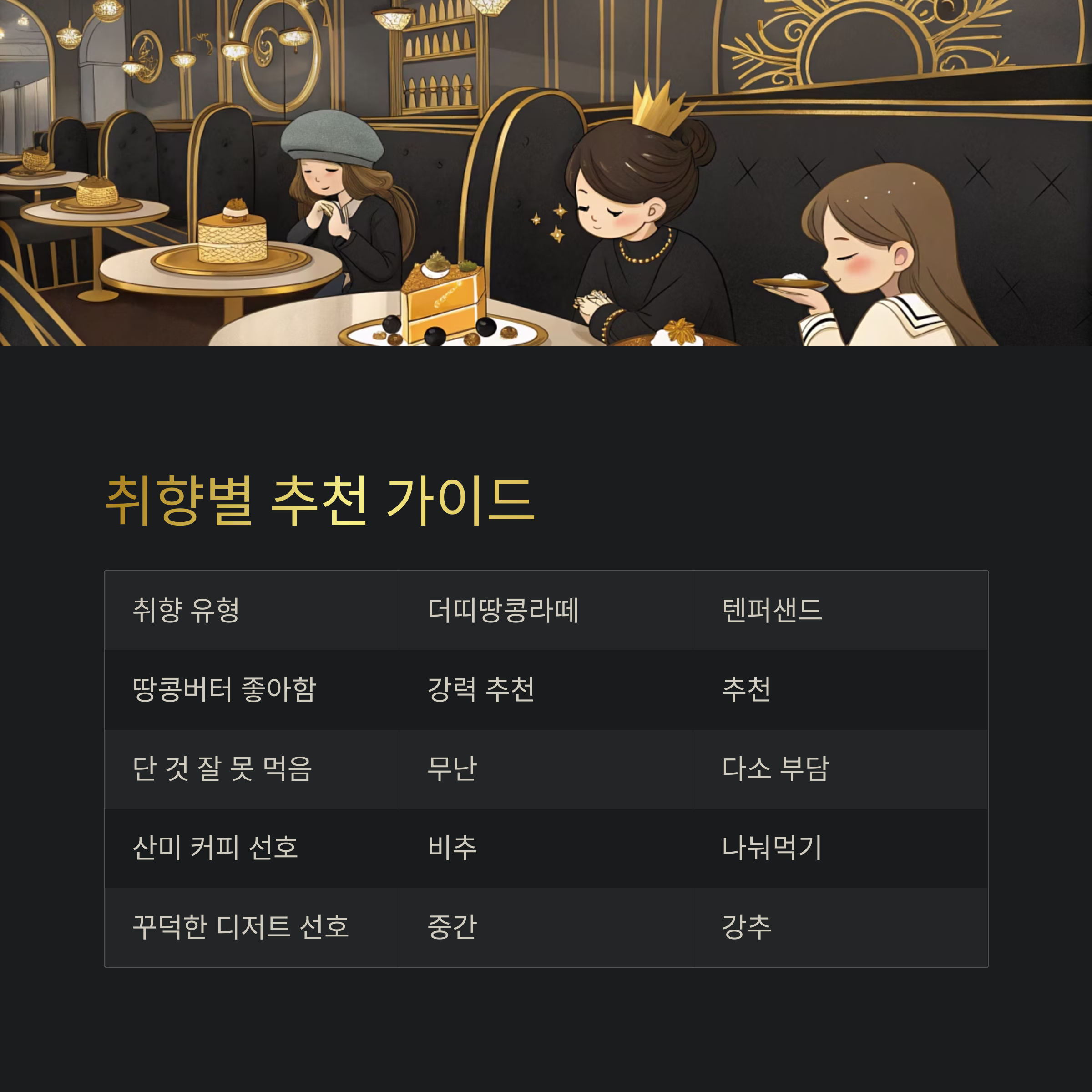 | 꾸덕한 디저트 좋아함 | 중간 | 강추 |