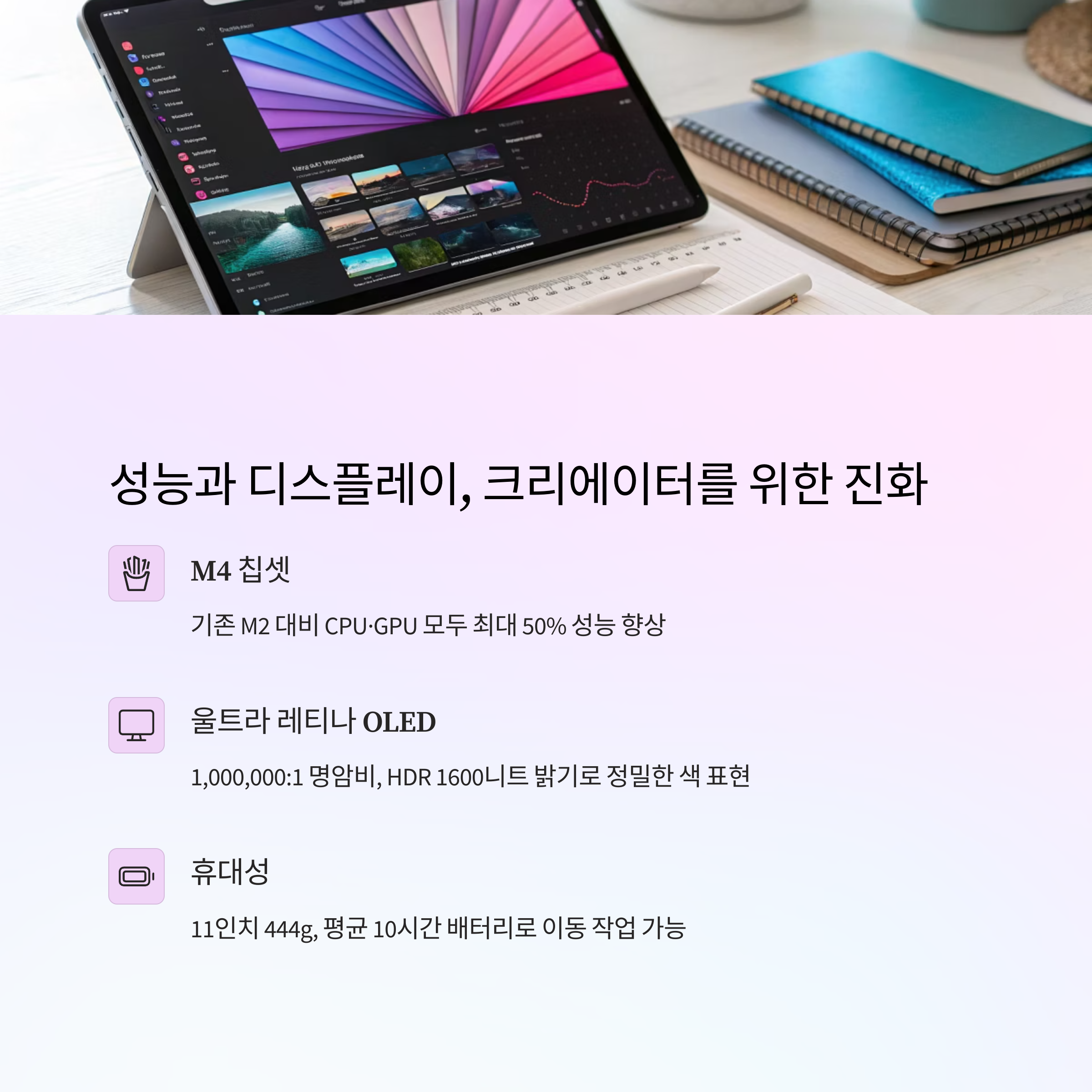 실제 크리에이터들이 ‘맥북 대신 들고 나갈 수 있는 유일한 태블릿’으로 평가하는 이유입니다.